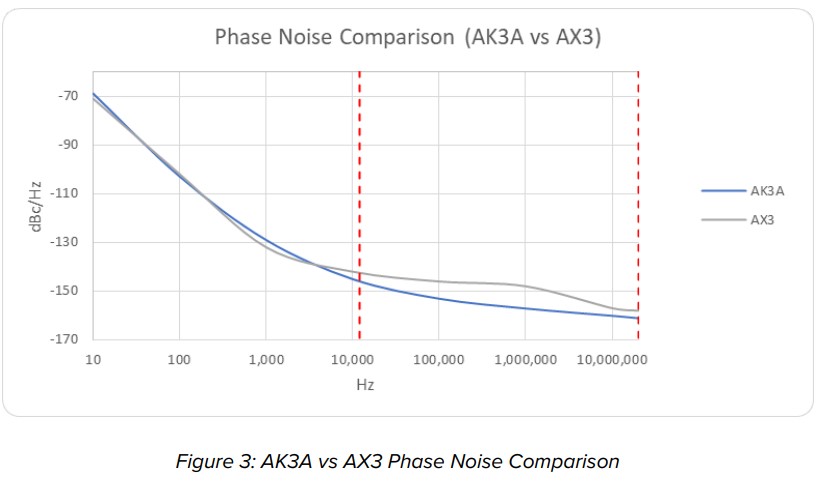 Table 3: AK3A vs AX3 RMS Phase Jitter (Vdd = 3.3V, Typical)