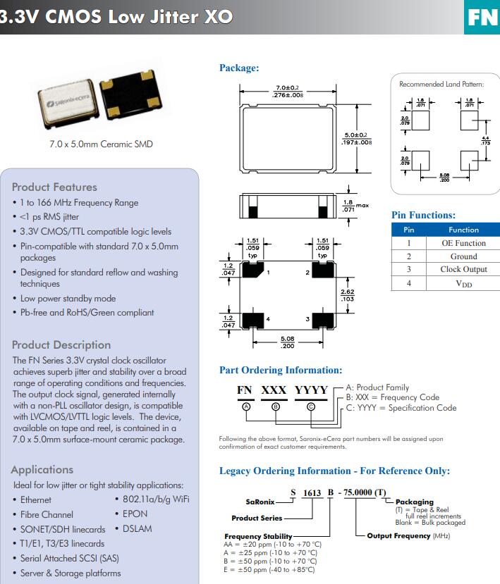 | FN7000003 | Diodes晶振 | SaRonix-eCera™ FN | 70MHz | ±50ppm | -40°C ~ 85°C |