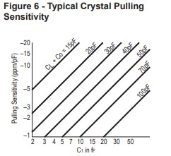其中C1、C0和C1都用相同的單位表示。 圖5顯示了頻率變化影響的典型曲線 關(guān)于負載電容的變化。 或者,通常將晶體的可拉性表示為切邊 負載電容變化的靈敏度,單位為ppm/pF。這是在 ppm/pF由: 其中C1、C0和CL以pF為單位,如圖6所示 對于(C0 + CL)的各種值。石英晶體諧振器極高的Q值相對較小的尺寸和出色的溫度穩(wěn)定