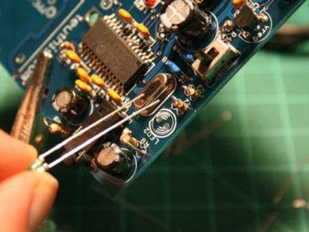 一、在鑿子形(扁鏟形)或刀口烙鐵頭處加適量的焊錫,用細毛筆蘸助焊劑或用助焊筆在兩端焊盤上涂少量助焊劑,并在焊盤上鍍上焊錫.一只手用鑷子夾持貼片晶振,居中貼放在相應的焊盤上,對準后不要移動.另一只手拿起烙鐵加熱其中一個焊盤大約2秒左右,撤離烙鐵,然后用同樣的方法加熱另一端焊盤大約2秒左右.注意焊接過程中保持貼片晶振始終緊貼焊盤放正,避免晶振一端翹起或焊歪.如果焊盤上的焊錫不足,可以一手拿烙鐵一手拿焊錫絲進行補焊,時間1秒左右.