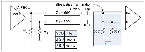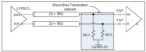 圖2:帶DC耦合并聯負載端接的LVPECL