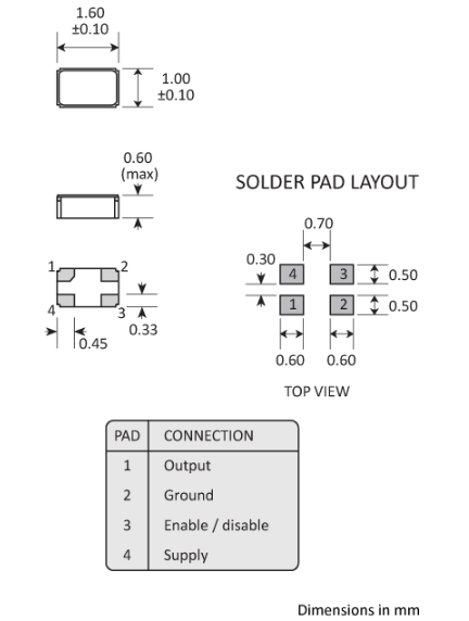 | 外形尺寸 | 1.6 x 1.0 x 0.6mm |