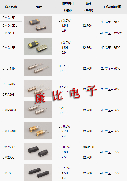 更多>>CITIZEN無源32.768K時鐘CM51932768DZYT晶振
