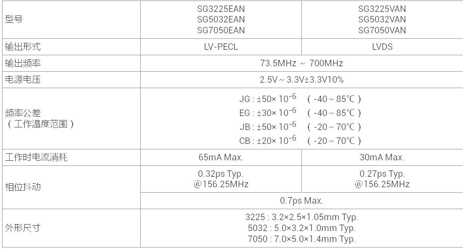這兩款晶振的頻率公差為±20×10-6、相位抖動為0.27ps typ.※4,具備了高精度、高穩定性能,又實現了-40℃至+85℃的較大的工作溫度范圍,輸出形式采用了市場需求強烈的LV-PECL和LVDS兩種.