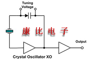 某些應(yīng)用需要調(diào)整振蕩器的頻率,這一調(diào)整可通過數(shù)字方式或模擬控制來完成.模擬控制使用壓控晶體振蕩器(VCXO)來完成.圖5顯示了如何通過向與諧振器串聯(lián)的變?nèi)荻O管施加電壓,并通過改變負(fù)載電容來改變其頻率的方式來調(diào)整振蕩器,這是VCXO的基本原理.