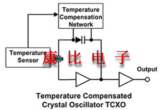 溫度補(bǔ)償晶體振蕩器(簡稱"TCXO")增加了電路元件,以補(bǔ)償石英諧振器和放大器的溫度相關(guān)變化(圖3).