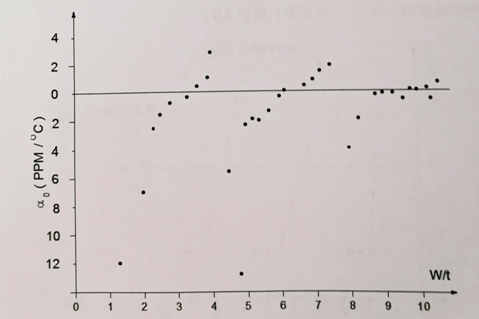 從圖3.6.3以看出,圖3.6.2所小的厚度切變振動,無論在哪種邊比情況下都能得到,但是把圖3.6.3和圖3.6.4結合起來,就能在特別小的邊比范圍內得到穩定的厚度切變振動。換句話說,很明顯1次溫度系數等于零的點不是連續存在的,而是以邊比大約為3、6、9那樣地周期性地出現,另外對于一次溫度系數隨邊比的變化為邊比越大,一次溫度系數變化越緩慢。