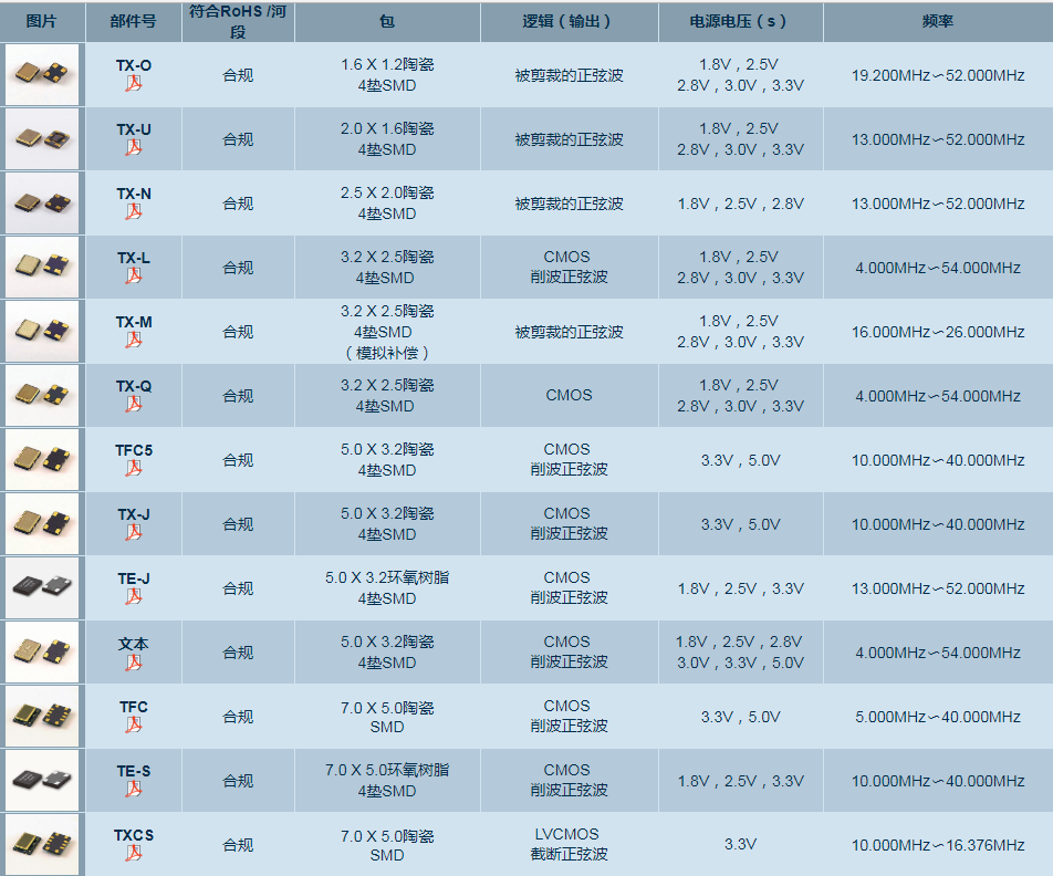 更多>>Transko晶振集團新系列高穩(wěn)定性溫補晶振型號尺寸詳情表